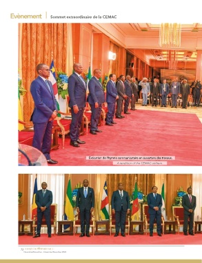 Evènement Sommet extraordinaire de la CEMAC Exécution de l’hymne communautaire en ouverture des travaux. A rendition of the CEMAC anthem. 72 Novembre/Décembre – November/December 2024