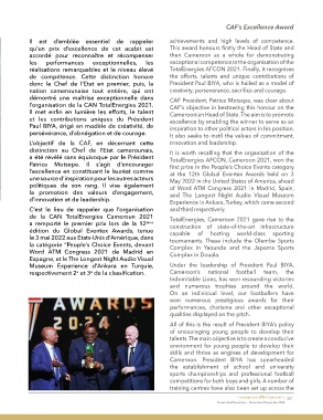 Paul BIYA, érigé en modèle de créativité, de CAF’s objective in bestowing this honour on the